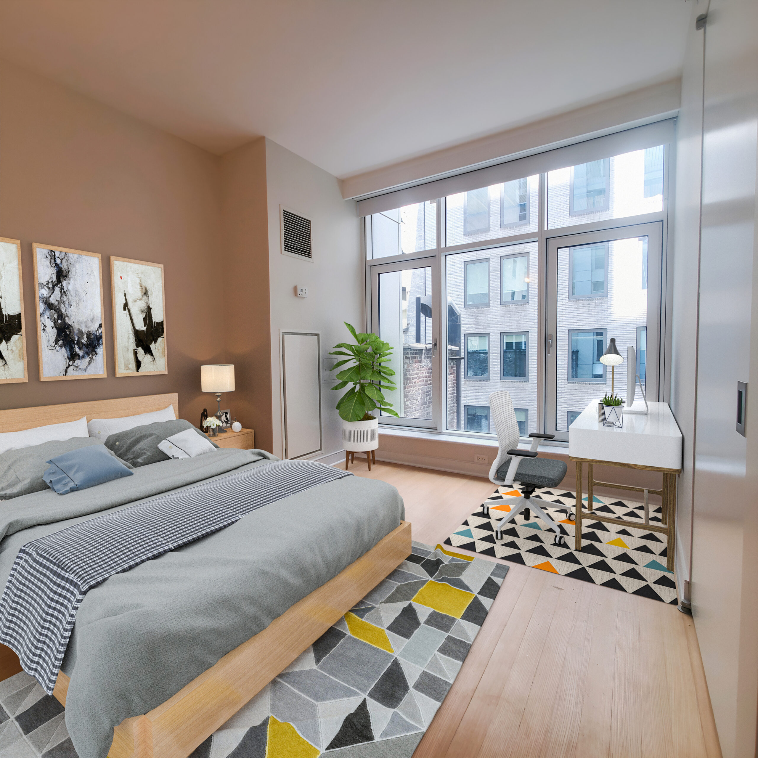 Enjoy everything this full service luxury glass tower residential building offers and features include: 24 hour doorman/concierge, card-access security system, and a full floor of resort-style amenities (state-of-the-art fitness center with staff, social lounge with pool table, spa lounge, sauna, massage room, yoga studio, golf simulator room, and outdoor terrace with large stone fireplace and Cabana lounge seating).Minutes access to public transportation, great restaurants, supermarkets, parks, Broadway and Off-Broadway theaters, movie theaters, and many fabulous Times Square attractions.